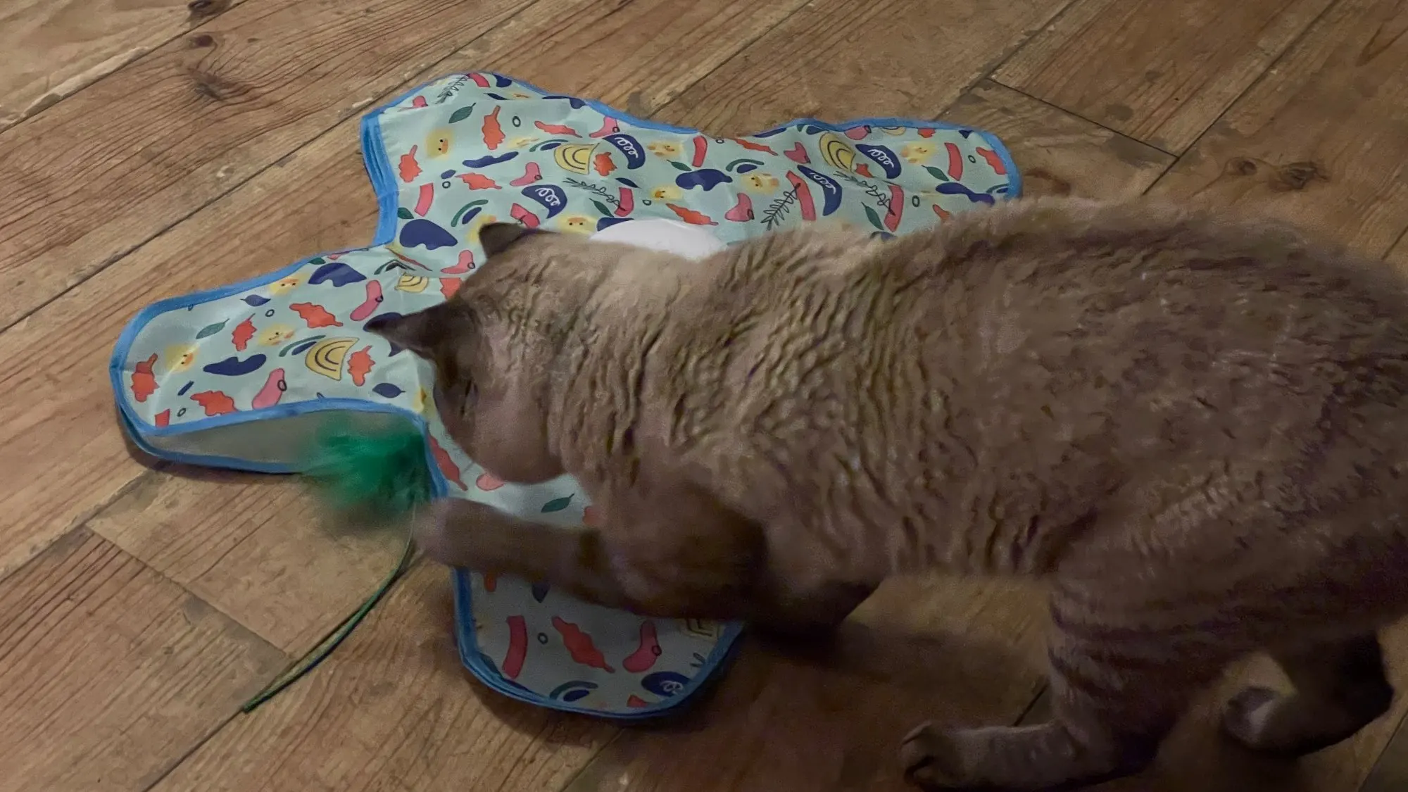 La plume se déplace sous le tissu de façon aléatoire pour imiter une vraie proie.